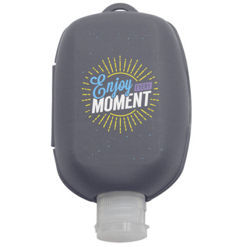 Idealer Reisebegleiter, ob für Handcreme, Desinfektionsmittel etc., der Travelguard aus recyceltem Kunststoff wird vom Strand und Küsten gesammelt. Einfach ein 50 ml Fläschen einlegen oder das Fläschen befüllen. Mit Karabinerhaken zur leichten Befestigung. Zusätzliches Halteclip auf der Rückseite. In Deutschland hergestellt und frei von BPA und Schadstoffen. Spülmaschinengeeignet zur einfachen Reinigung. Mit Siebdruck veredeln in den Maßen 25 x 45 mm. Auf Anfrage ab 2500 Stück mit In-Mould-Druck oder mit Prägung individualisierbar. Sondereinfärbungen ab 2500 Stück möglich. Das Werbegeschenk für Mitarbeiter auf Geschäftsreisen. Travelguard Ocean individuell nach deinen Vorstellungen bedrucken.