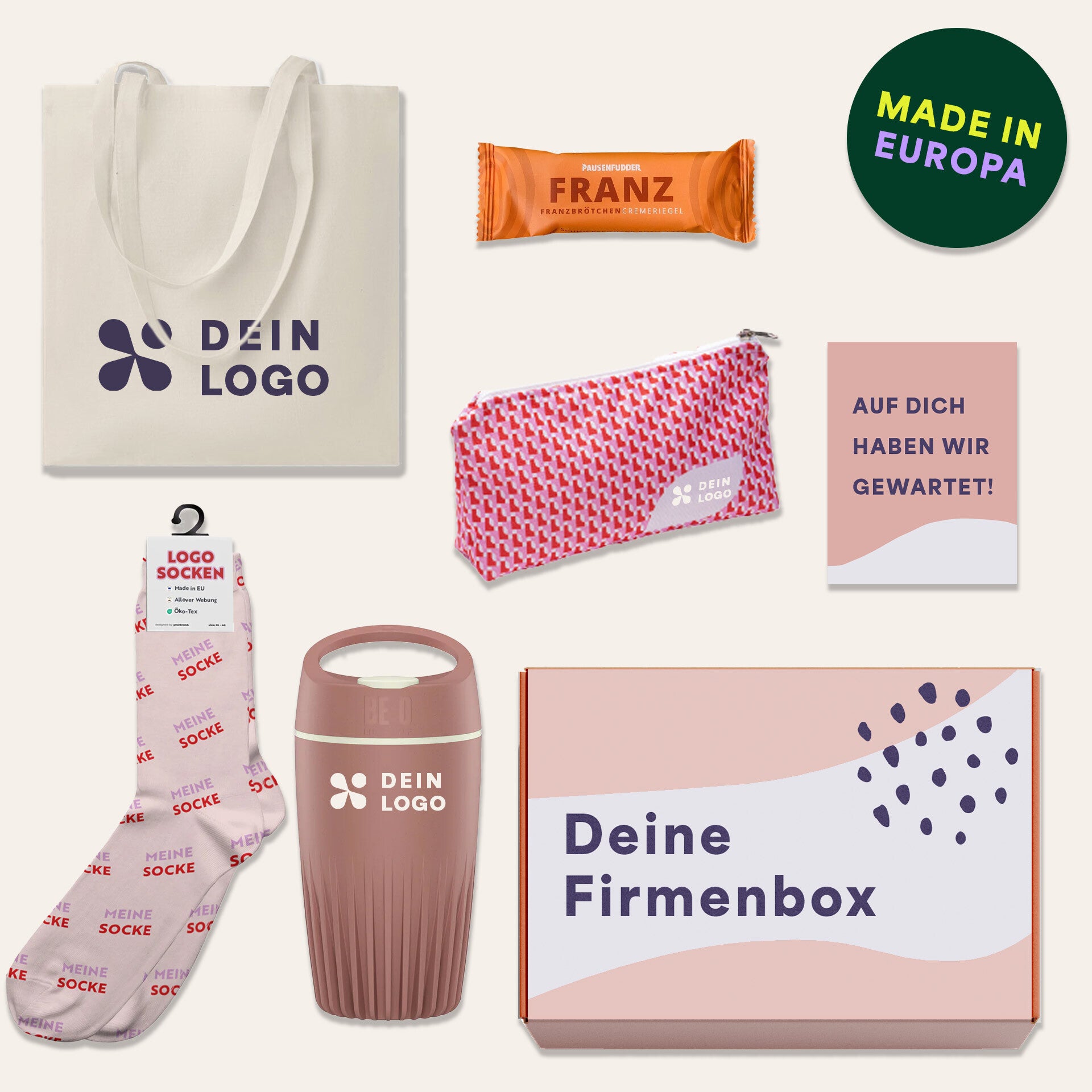 Die Geschenkboxen bestehen aus umweltfreundlichen Materialien und bieten dir zahlreiche Möglichkeiten zur Personalisierung. Die Produkte in der EU Box können für einen einfarbigen Logodruck oder eine Gravur verwendet werden, um dein Branding hervorzuheben. Auf Anfrage tauschen wir die Produkte gerne aus, um die Box nach deinen individuellen Vorstellungen anzupassen. Die Boxen selbst können mit einem individuellen Sticker, in bedruckter brauner Kartonage oder im vollfarbigen Druck auf weiß-brauner Kartonage geliefert werden, um einen besonders auffälligen und professionellen Look zu erzielen.