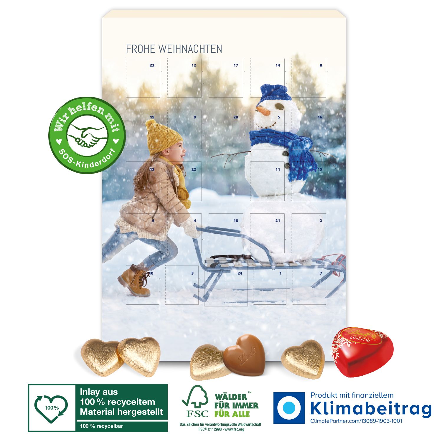 Der Adventskalender Lindt „Schokoladen-Herzen“ ist ein köstliches Geschenk, das deine KundInnen oder MitarbeiterInnen in der besinnlichen Weihnachtszeit begeistert. Dieser hochwertige Kalender bietet eine sorgfältige Auswahl an Lindt Schokolade, die sowohl lecker als auch umweltfreundlich ist. Mit einer Schokoladenmischung von insgesamt ca. 130 g beinhaltet er 23 zarte Vollmilch-Herzen sowie ein zartschmelzendes Pralinenherz von Lindt Lindor im 24. Türchen, das den Advent krönend abschließt.