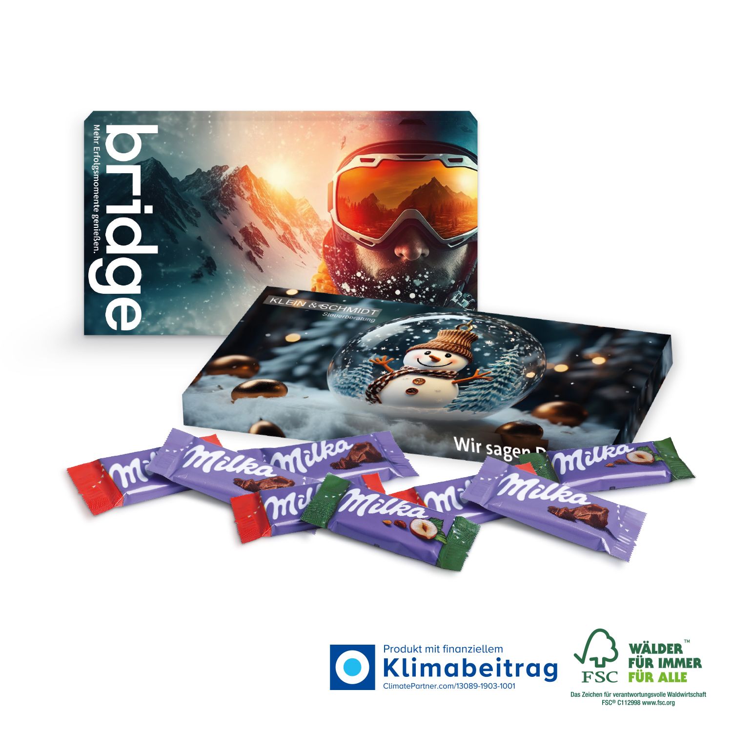 Milka Schokotäfelchen in Präsentbox im Überblick: