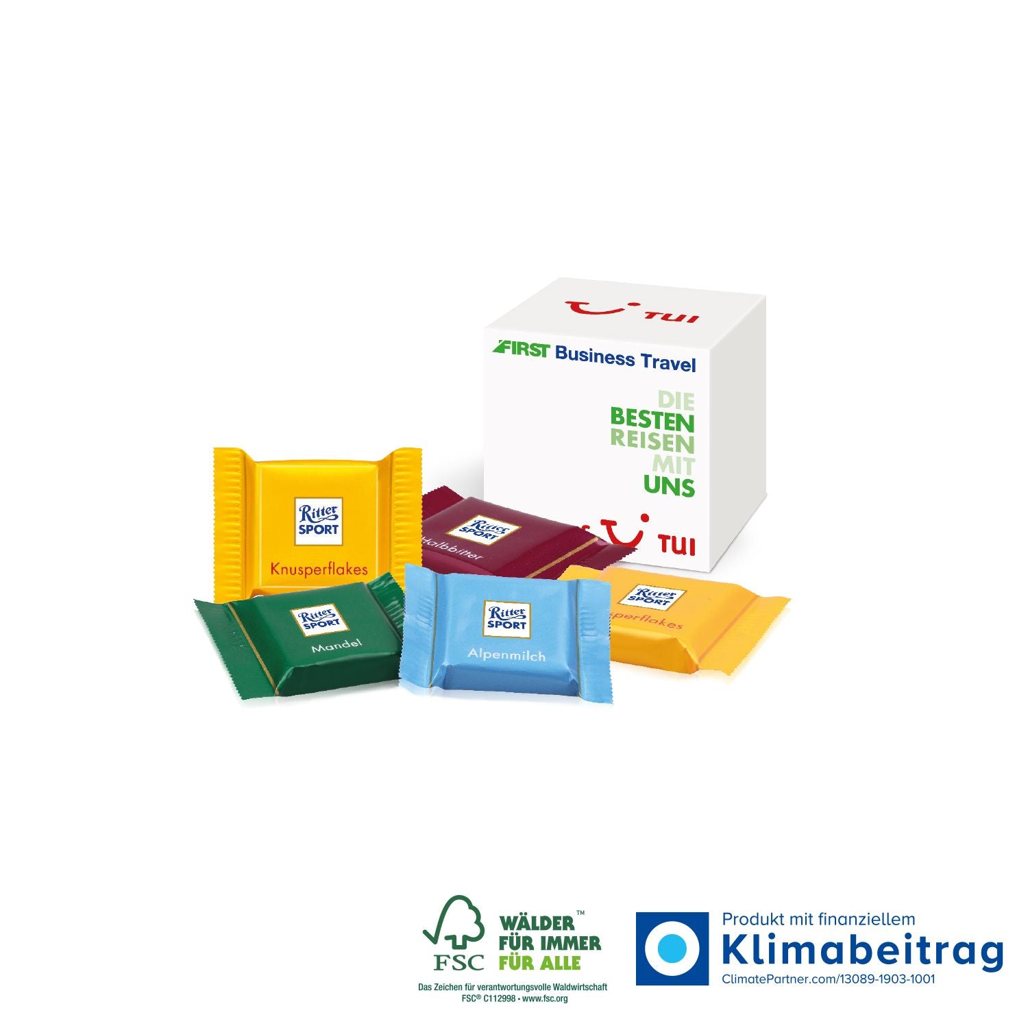 Werbewürfel mit Ritter SPORT Schokotäfelchen im Überblick: