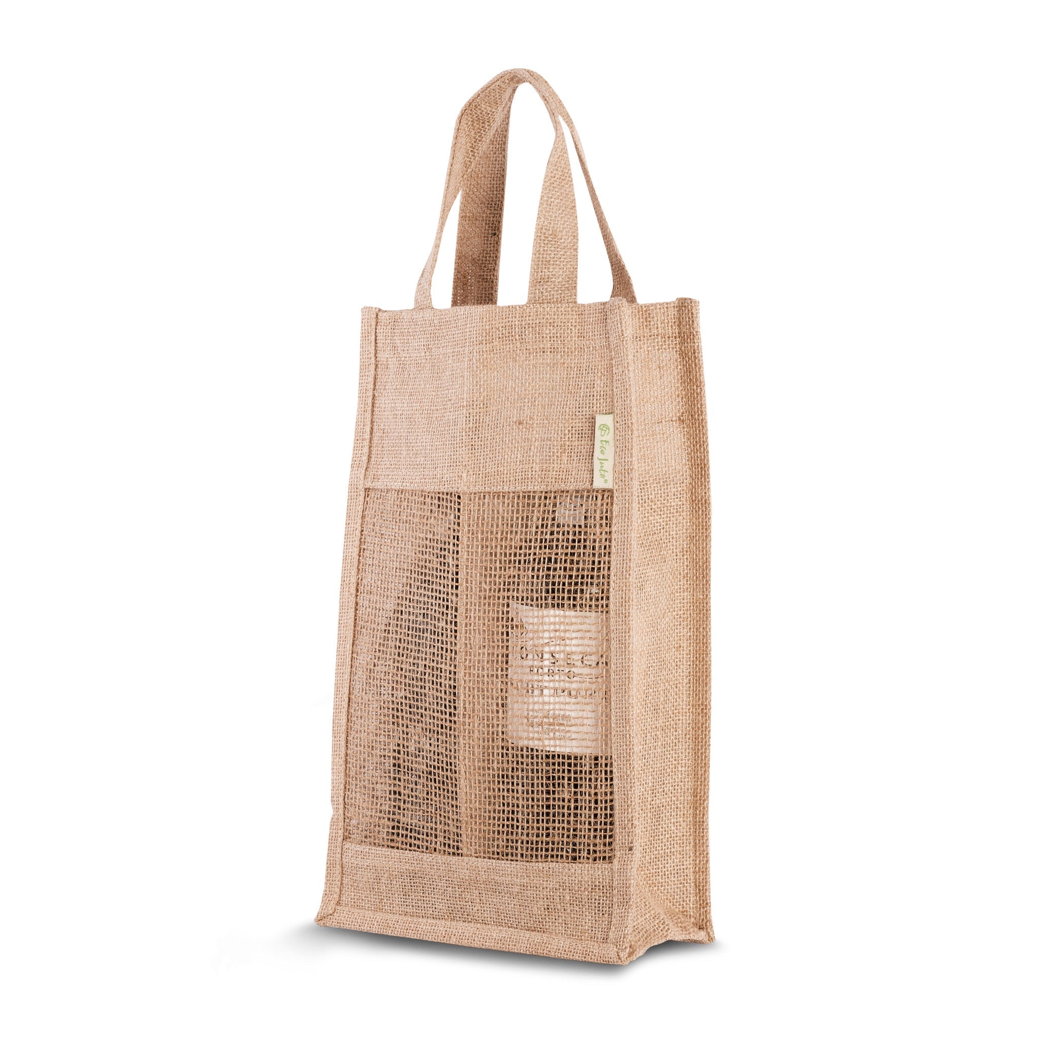 Flaschentasche aus Jute Mesh für 2 Flaschen im Überblick: