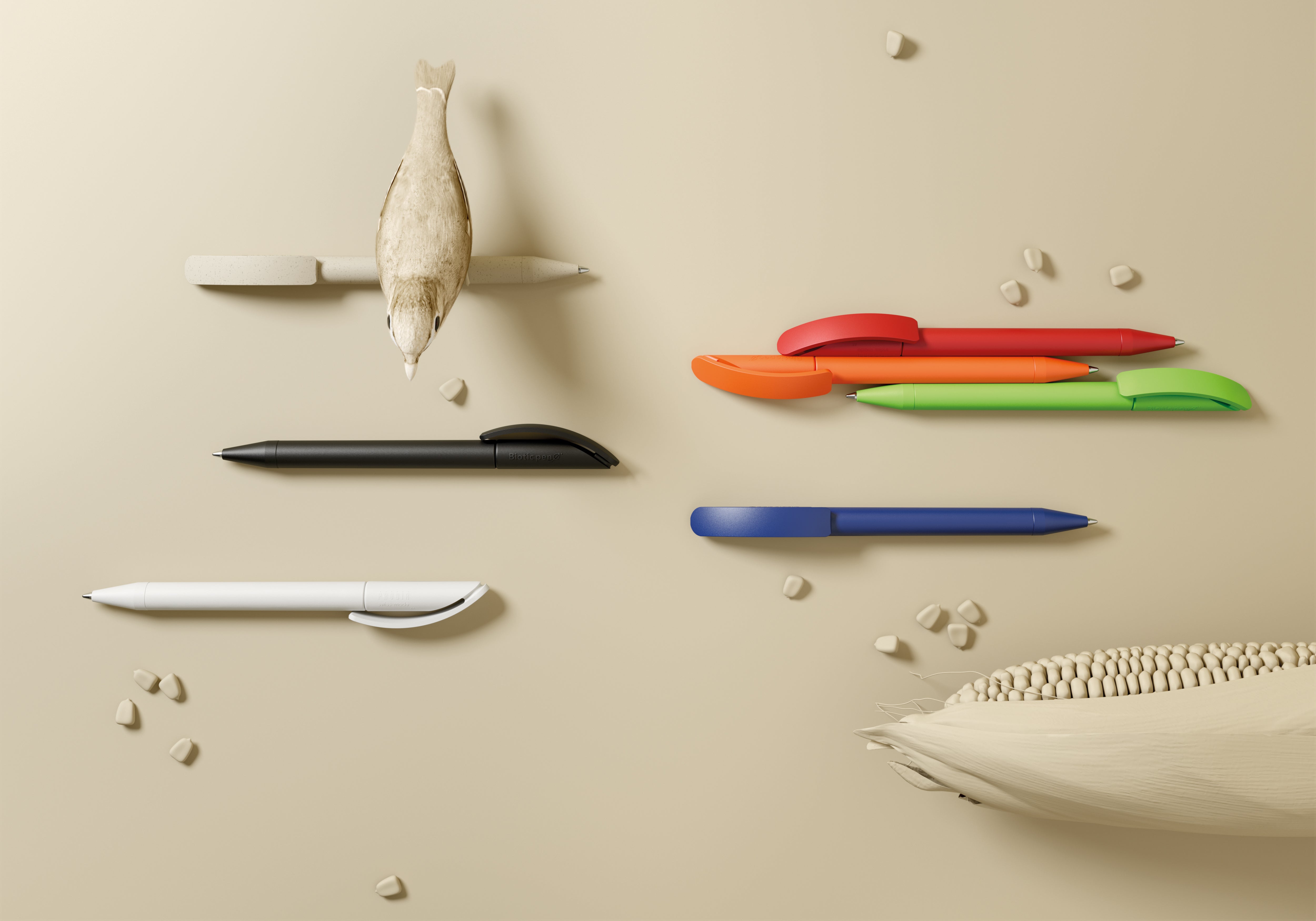 Der prodir DS3 Biotic Kugelschreiber ist mit seinem biologisch abbaubarem Material, das nachhaltige Werbegeschenk im Thema Schreibwaren. Der Kugelschreiber besteht aus Bio-Kunststoff pflanzlichen Ursprungs aus nachwachsenden Rohstoffen, damit kann es dem Ökosystem wieder zugefügt werden. Das Material besteht aus Polyactid. Der Kugelschreiber in der Farbe Sand enthält zusätzlich FSC-Holzmehl. Die Großraummine mit 1.0 ist schadstoffarm und bietet eine Schreiblänge von 5000 m. Den Kugelschreiber kannst du farblich selbst gestalten, die Veredlung ist auf dem Clip, dem Schaft oder der Kappenseite. Der Druck an mehreren Positionen ist ebenfalls möglich. Hergestellt in der Schweiz. Nachhaltiges Give-Away perfekt für Messen und Konferenzen geeignet. Gestalte deinen prodir DS3 Biotic Kugelschreiber individuell in deinem Design.