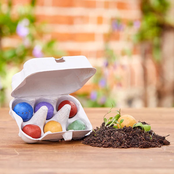 6 mittlere Blumenmurmeln im Mini-Eierkarton im Überblick: