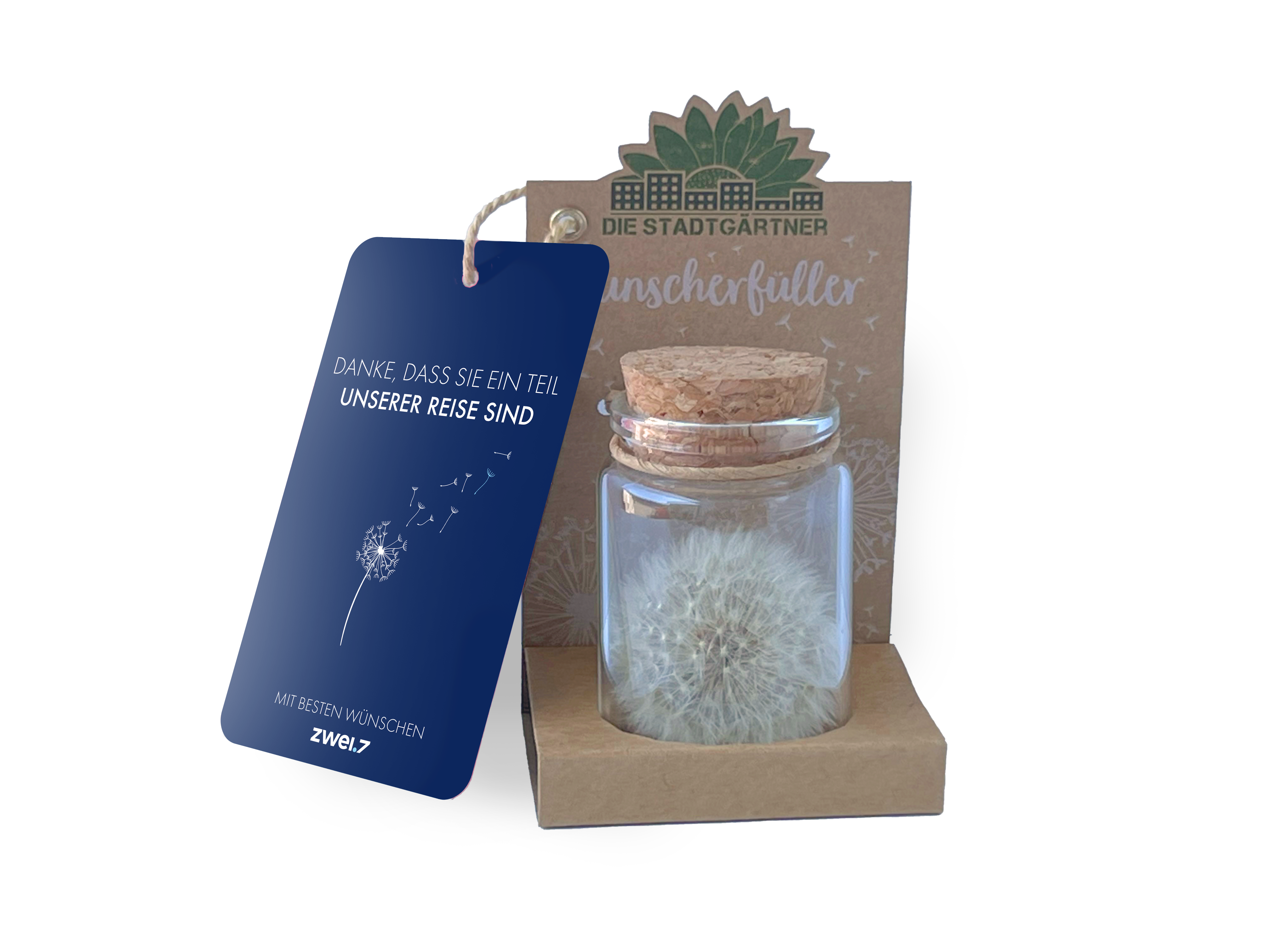 Ob kleiner oder großer Wunsch, mit dem großen Wunscherfüller wird er wahr! Die Trägerkarte ist aus PEFC zertifiziertem Papier. Der große Wunscherfüller ist in Zusammenarbeit mit der örtlichen Lebenshilfe hergestellt. Die Individualisierung erfolgt über das Hängtag auf der Vorder- und Rückseite und ist individuell in deinem Design bedruckt. Mit diesem einzigartigen Werbeartikel überzeugst du deine Kund*Innen und Mitarbeiter*Innen! Gestalte deinen großen Wunscherfüller ganz individuell. Nur solange der Vorrat reicht.