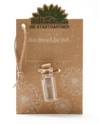 Damit gehen deine Wünsche wahr! Der kleine Wunscherfüller macht eine Freude und sendet eine tolle Botschaft an Kund*Innen und Mitarbeiter*Innen. Die Trägerkarte wird mit deiner Werbebotschaft bedruckt. Die Druckfläche für die Vorder- und Rückseite ist je 70 x 100 mm groß. Handgemacht in Deutschland. Ein einzigartiges Werbegeschenk, ideal für besondere Werbebotschaften, die lange anhalten. Gestalte deinen kleinen Wunscherfüller ganz individuell in deinem Design.