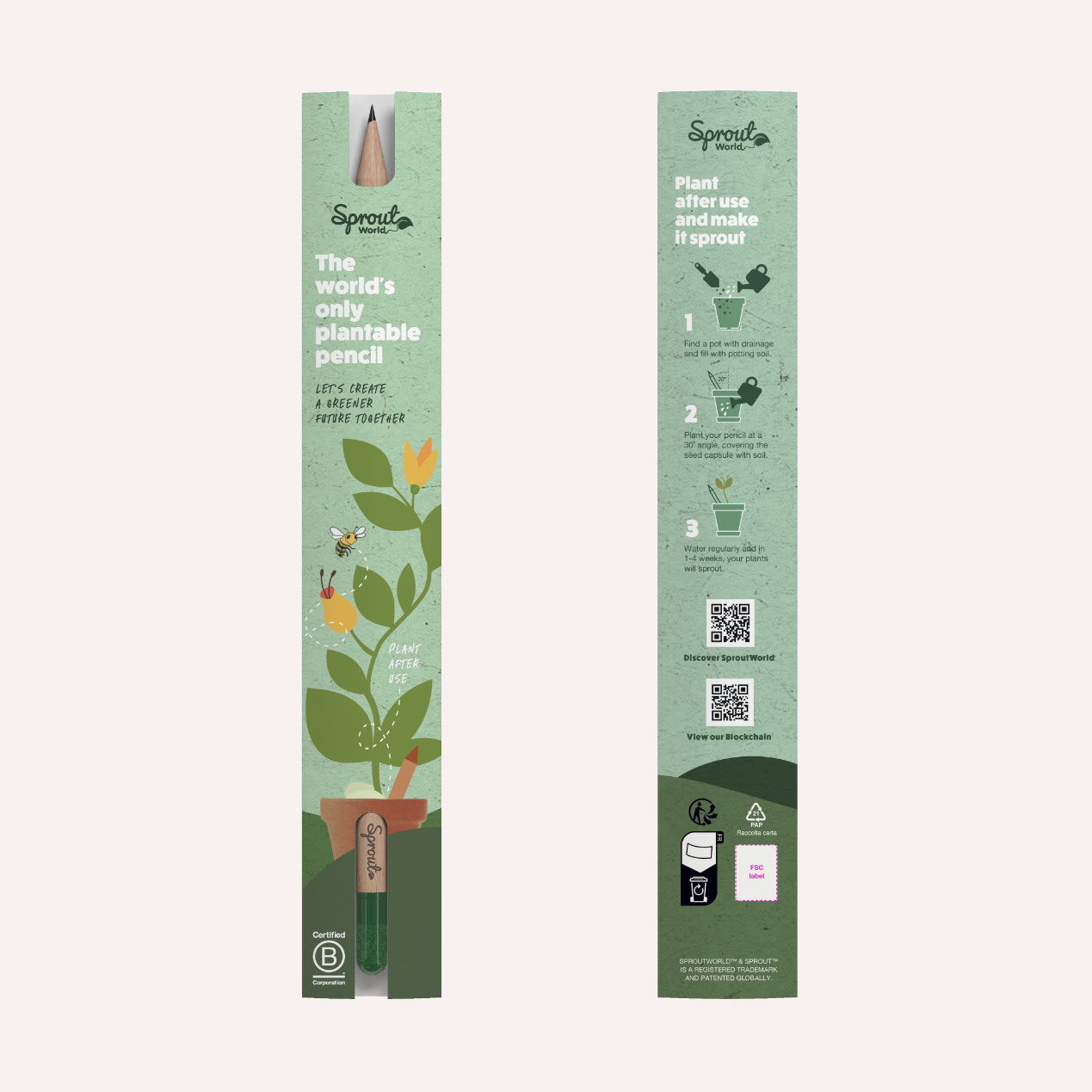 Der Sprout Buntstift der mehr als nur Schreiben kann. Ob Tomaten oder Sonnenblumen, die Wahl der Samen liegt bei dir. Der Buntstift ist aus FSC-zertifiziertem Holz ist in Europa hergestellt und ist bereits angespitzt. Zusätzlich ist der Stift B-Corp zertifiziert und damit besonders nachhaltig! Der 1er Bleistift ist in der Einsteckhülle verpackt. Die Verpackung ist im Standardmotiv bedruckt. Die Rückseite ist mit der Anleitung zum einpflanzen der Stifte versehen. Der Buntstift ist in der Einsteckhülle befestigt, wobei die Hülle eine schmalere und kompaktere Verpackung ist. Bei der Hülle ist der Stift in der Verpackung fest verankert. Sobald der Stift zu kurz für die weitere Nutzung ist einfach einpflanzen und der Pflanze beim Wachsen zusehen. Ideal für Messen und Konferenzen geeignet. Graviere oder bedrucke den Stift ganz individuell in deinem Design. Gestalte deinen Sprout Buntstift mit deinen Samen ganz einfach hier!