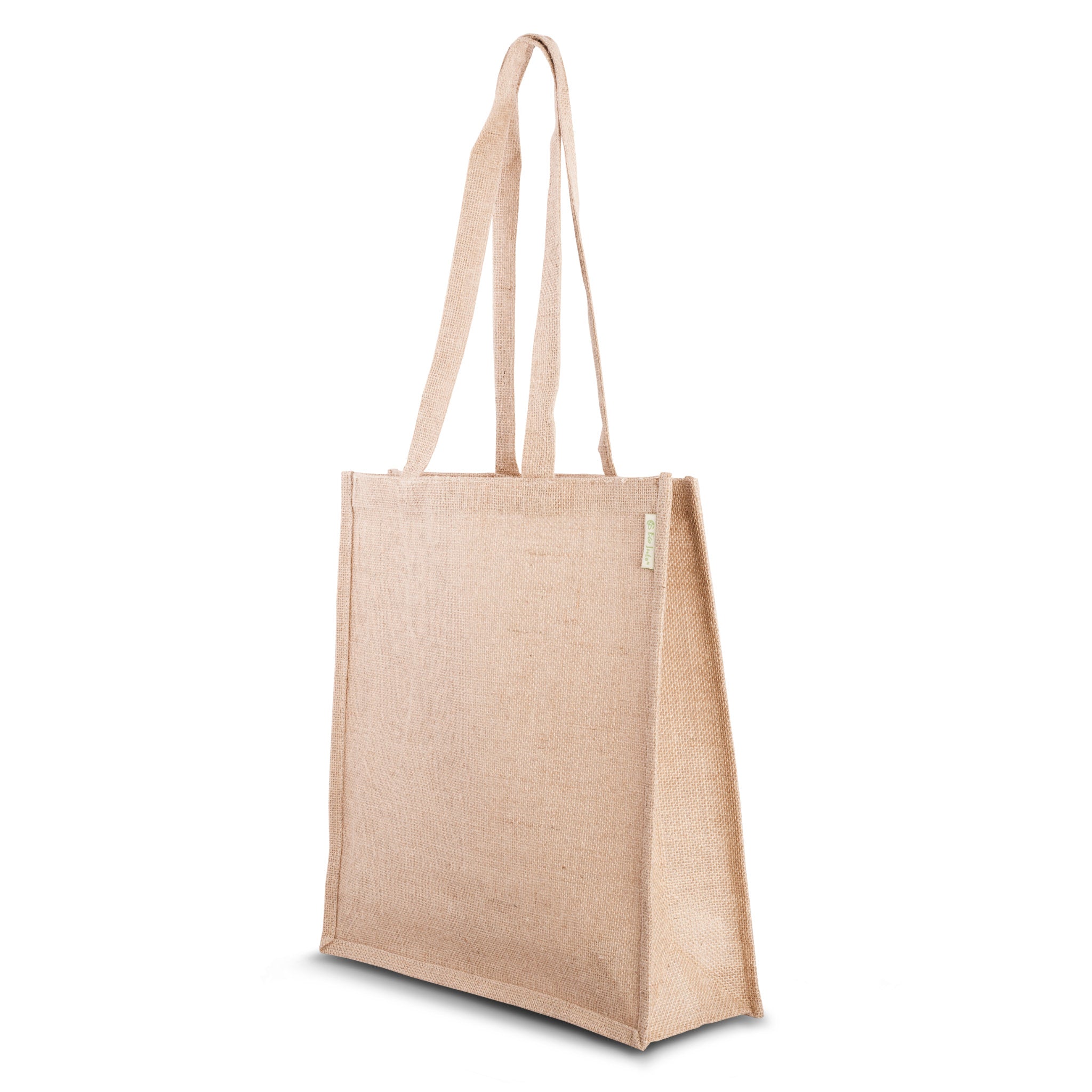 Juteschultertasche Basic, mit den langen Riemen kann diese Jutetasche bequem über der Schulter getragen werden. Aufgrund des großen Tragekomforts eignet sich die Tasche auch zum Mitnehmen auf einen Tagesausflug. Wie alle anderen Taschen aus unserem Sortiment können wir auch diese Tasche mit Ihrem Werbeslogan oder Logo bedrucken! Mit dieser besonderen Schultertasche fallen Sie garantiert auf!
