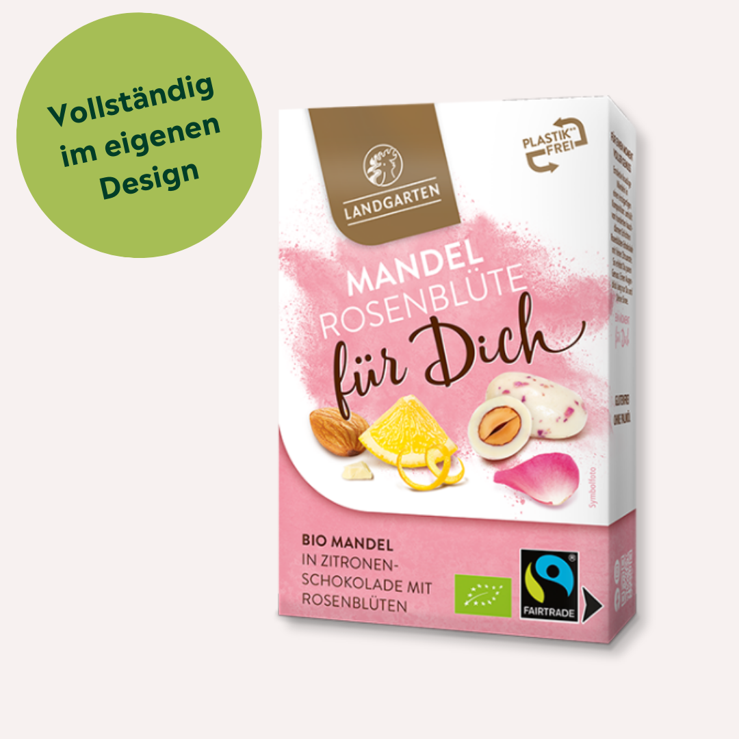 Begebe dich auf eine kulinarische Reise mit unserem exquisiten Snack – geröstete Mandeln umhüllt von weißer Schokolade mit Zitronengeschmack und Rosenblüten. Ein geschmackliches Erlebnis, das nicht nur ausgefallen ist, sondern auch aus kontrolliert biologischem Anbau stammt. Diese schokolierten Mandeln bieten nicht nur einen einzigartigen Geschmack, sondern auch nachhaltige und bewusste Werbegeschenke.
