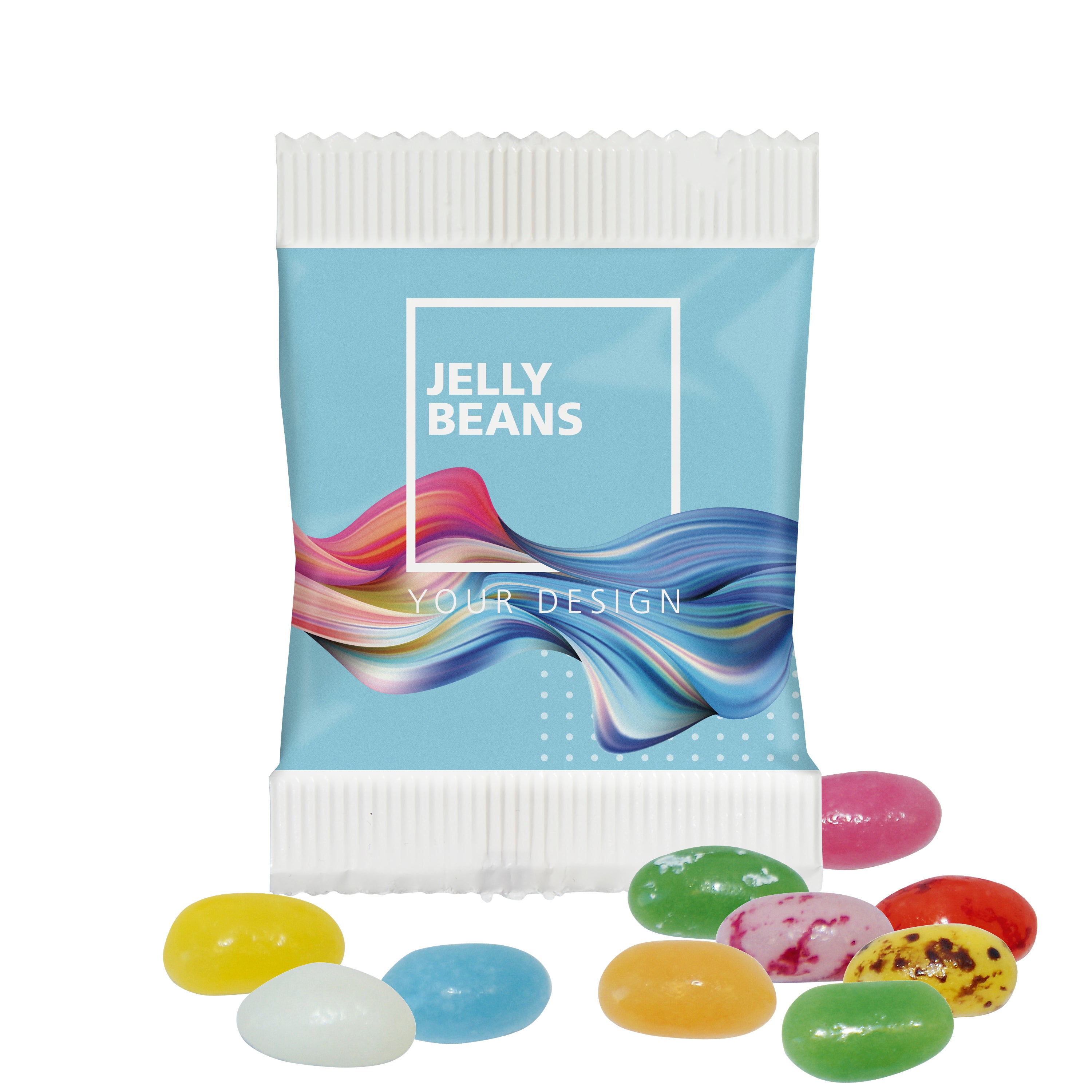 Jelly Beans - Die süßen Werbeträger für Messen oder Konferenzen. Die beliebten bohnenförmigen Dragees sind sind im bunten Mix aus verschiedenen Geschmacksrichtungen erhältlich. Die Tütchen sind ideale Werbeträger für dein Unternehmen, um deine Marke auf eine süße und ansprechende Weise zu präsentieren. Die Jelly Beans Tüten sind aus recycelbarem FSC-Papier hergestellt und kommen aus einer klimaneutralen Produktion. Die Papiertütchen können mit deiner Werbebotschaft bedruckt werden und sind damit noch perfekte Give-Aways für Kund:Innen und Geschäftspartner:Innen.