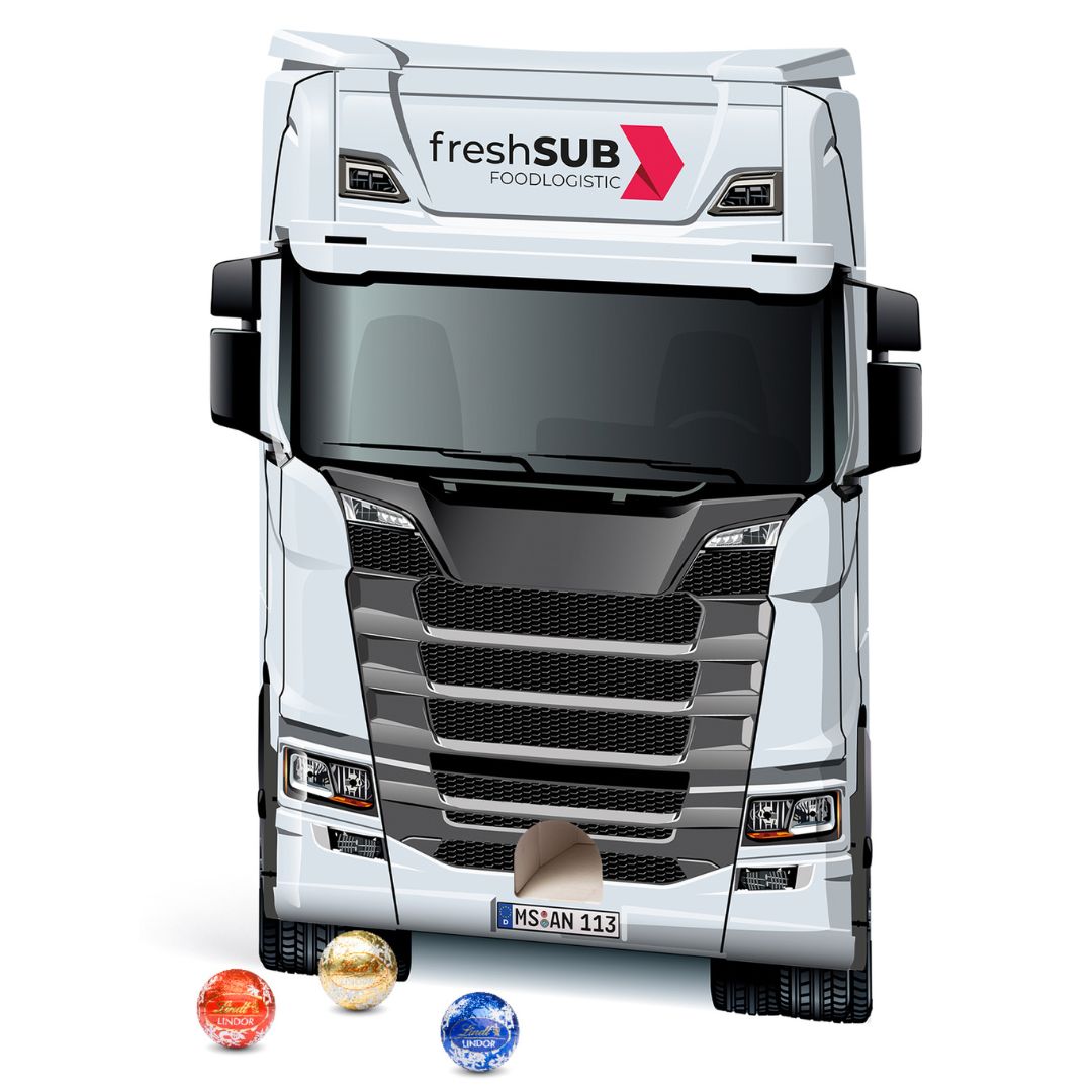 Der Lindt Lindor Adventsspender LKW kombiniert interaktiven Spaß mit hochwertigem Genuss und ist damit das ideale Geschenk für KundInnen, MitarbeiterInnen oder GeschäftspartnerInnen, das sowohl festliche Stimmung als auch Markenpräsenz auf stilvolle Weise vereint.
