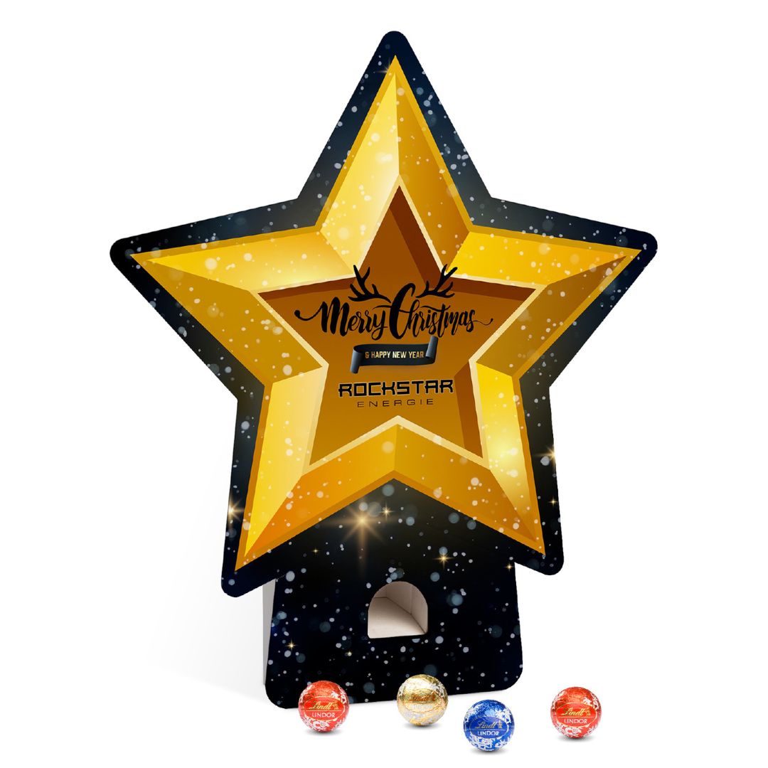 Der Lindt Lindor Adventsspender Stern kombiniert interaktiven Spaß mit hochwertigem Genuss und ist damit das ideale Geschenk für KundInnen, MitarbeiterInnen oder GeschäftspartnerInnen, das sowohl festliche Stimmung als auch Markenpräsenz auf stilvolle Weise vereint.