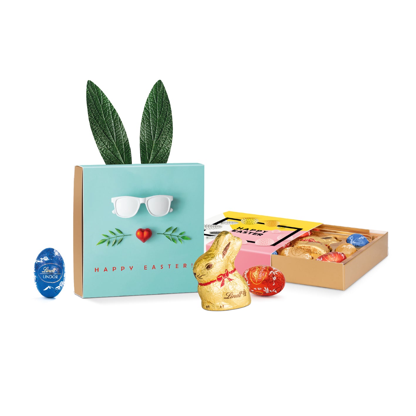 Noch auf der Suche für das passende Werbemittel für Ostern? Wie wärs mit dem Lindt Präsent Ostern im FSC-zertifiziertem Werbeschuber. Damit nicht nur gut für die Nachhaltigkeit, sondern auch qualitativ kann es geschmacklich überzeugen. Denn die 6 Lindor Eier und ein Goldhase versüßen den Ostergruß deutlich! Nur solange der Vorrat reicht.