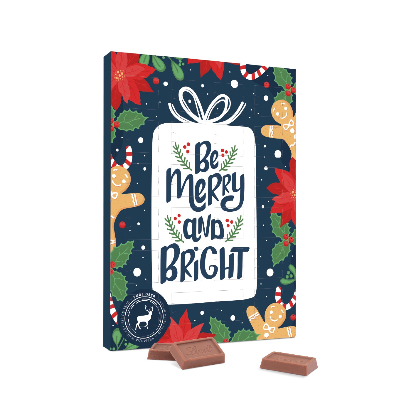 Der Adventskalender ist perfekt für deine Mitarbeiter*Innen geeignet. Der Wand Adventskalender ist mit Lindt Schokotäfelchen gefüllt die in 3 Farben verpackt sind. Der Aufhänger ist auf der Rückseite des Kalenders. Im recycelbarem Papier verpackt und aus klimaneutraler Produktion hergestellt. Der Kalender kann auf der Vorderseite frei gestaltet werden im 4c Verfahren bedruckt. Das Format eines Großbriefes ist ideal, um platzsparend die Weihnachtszeit zu versüßen. Nur solange der Vorrat reicht!