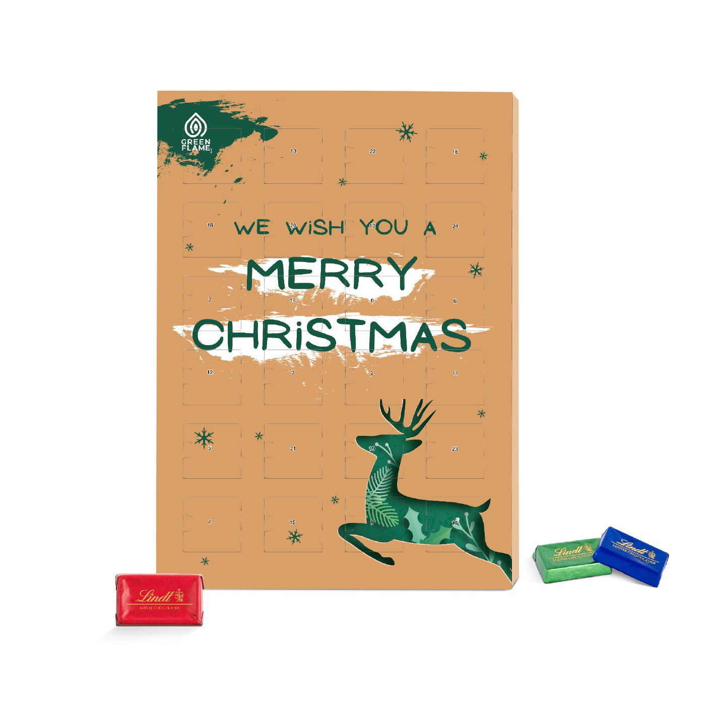 Bereite deinen Mitarbeiter*Innen eine Freude und versüße die Weihnachtszeit mit dem Marken Wand Adventskalender. Mit 3 Süßigkeiten zur Befüllung zur Auswahl, ob Sarotti, Lindt oder Rettergut - der Adventskalender macht glücklich. Der Adventskalender ist aus FSC-zertifiziertem Karton und mit recycelbarem PET Inlay ausgelegt. Die Vorderseite des Adventskalender kann im 4c Euroskala Druck individuell gestaltet werden. Aus klimaneutraler Produktion. Bereite deinen Mitarbeiter*Innen eine Freude und verschenke den Adventskalender in deinem Design.