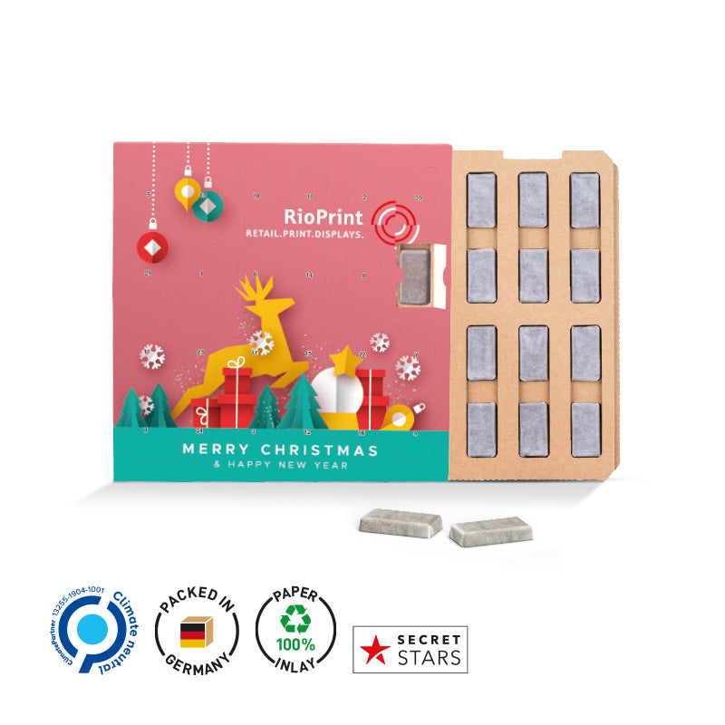 Der Täfelchen Adventskalender Eco Papierblister ist das perfekte nachhaltige Mitarbeitergeschenk für Weihnachten.