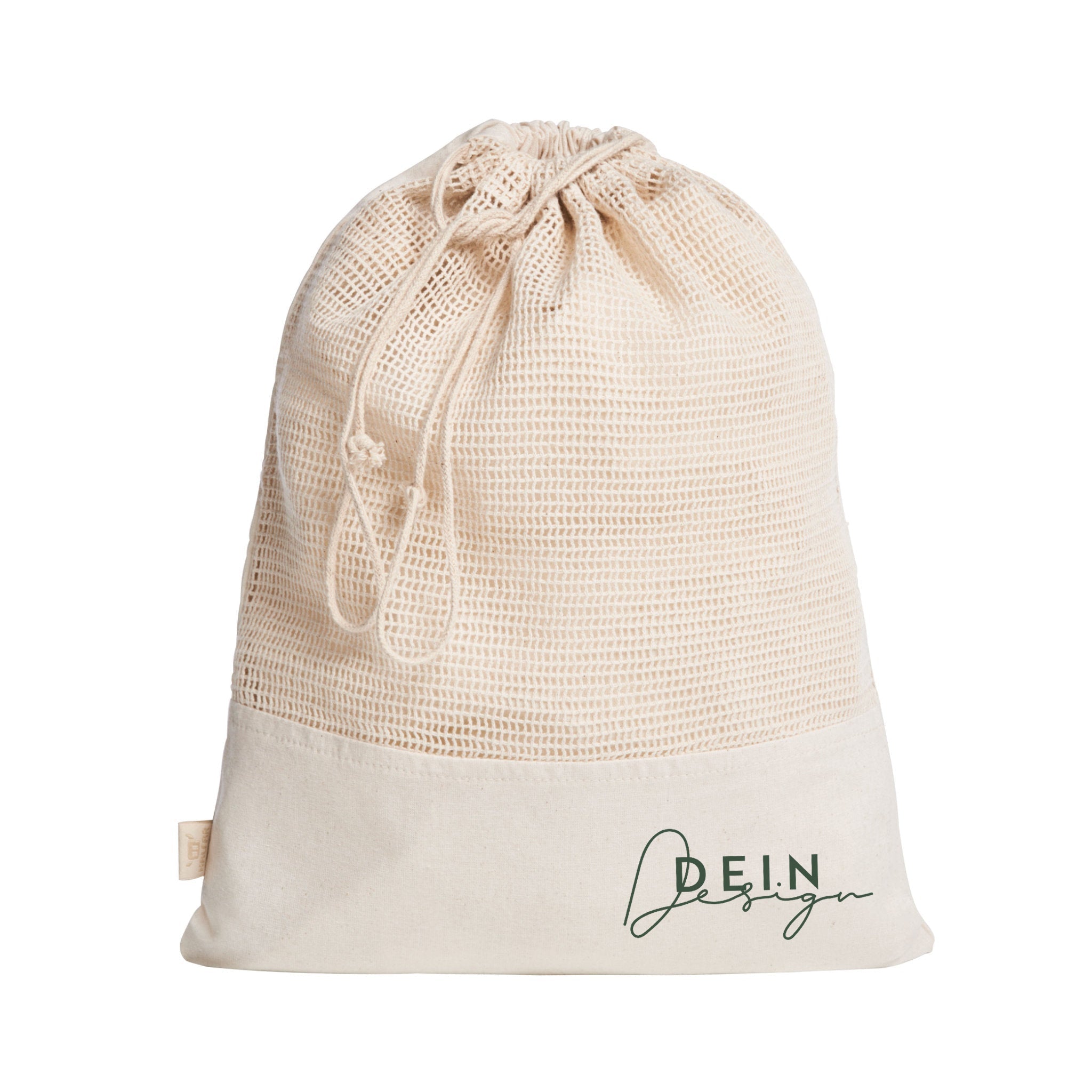 Diese praktische Tasche mit Zugbändern, Mesh und stabilem Boden ist ein echter Allrounder. Es ist eine nachhaltige Alternative zu Plastik beim Kauf von Gemüse oder Brot. Ob zum Ordnen zuhause, beim Einkaufen oder als atmungsaktiver Wäschesack für Reisen und Sport. Und das Beste: Es ist ein vielseitiger Mehrweg-Werbeartikel aus 100 % Bio-Baumwolle. All dies macht Bio-Mehrweg. Natürlich kann diese Mehrwegtasche auch auf Vorder- und Rückseite veredelt werden.