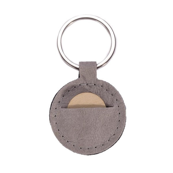 Der Schlüsselanhänger Circle aus veganem Leder! Das Naturmaterial Papyr besteht aus Zellulose und ist waschbares Papier. Der hochwertige Schlüsselanhänger hat einen Durchmesser von 4 cm und ist in vielen verschiedenen Farben erhältlich. Der Anhänger ist OEKO-TEX und FSC-zertifiziert und wird in liebevoller handarbeit in einer Manufaktur in Bayern hergestellt. Dein Logo oder Wunsch-Design kann per Siebdruckverfahren mit bis zu 4 Farben auf die Vorderseite des Anhängers gedruckt werden. Auf der Rückseite des Anhängers befindet sich ein kleines Fach für einen Einkaufswagenchip. Optional kann der Anhänger mit einem FSC-zertifizierten Chip geliefert werden. Designe jetzt deinen modernen und nachhaltigen Schlüsselanhänger mit deinem Logodruck. Idealer Merch für dein Unternehmen!