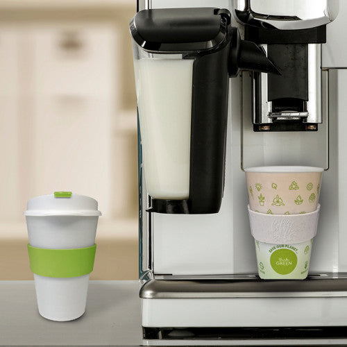 Der Bio Kaffeebecher Crema besteht aus den Überresten der gepressten Zuckerrohrpflanze und ist die perfekte Alternative zum Einwegbecher. Der Kaffeebecher ist ein Must-Have in jeder Onboardingbox. Die Soft-Manschette gibt dir extra Schutz, falls der Becher zu heiß ist. Die Manschetten sind in 9 Farben erhältlich. Zu 100% recycelbar und in Deutschland hergestellt. Die Veredelung erfolgt durch Siebdruck mit den Maßen 228 x 85 mm. Auf Anfrage ab 2000 Stück mit IML Druck oder Prägung der Soft-Manschette möglich. Der Bio-Coffee to go Crema mit 300ml Füllvolumen individuell bedruckt.
