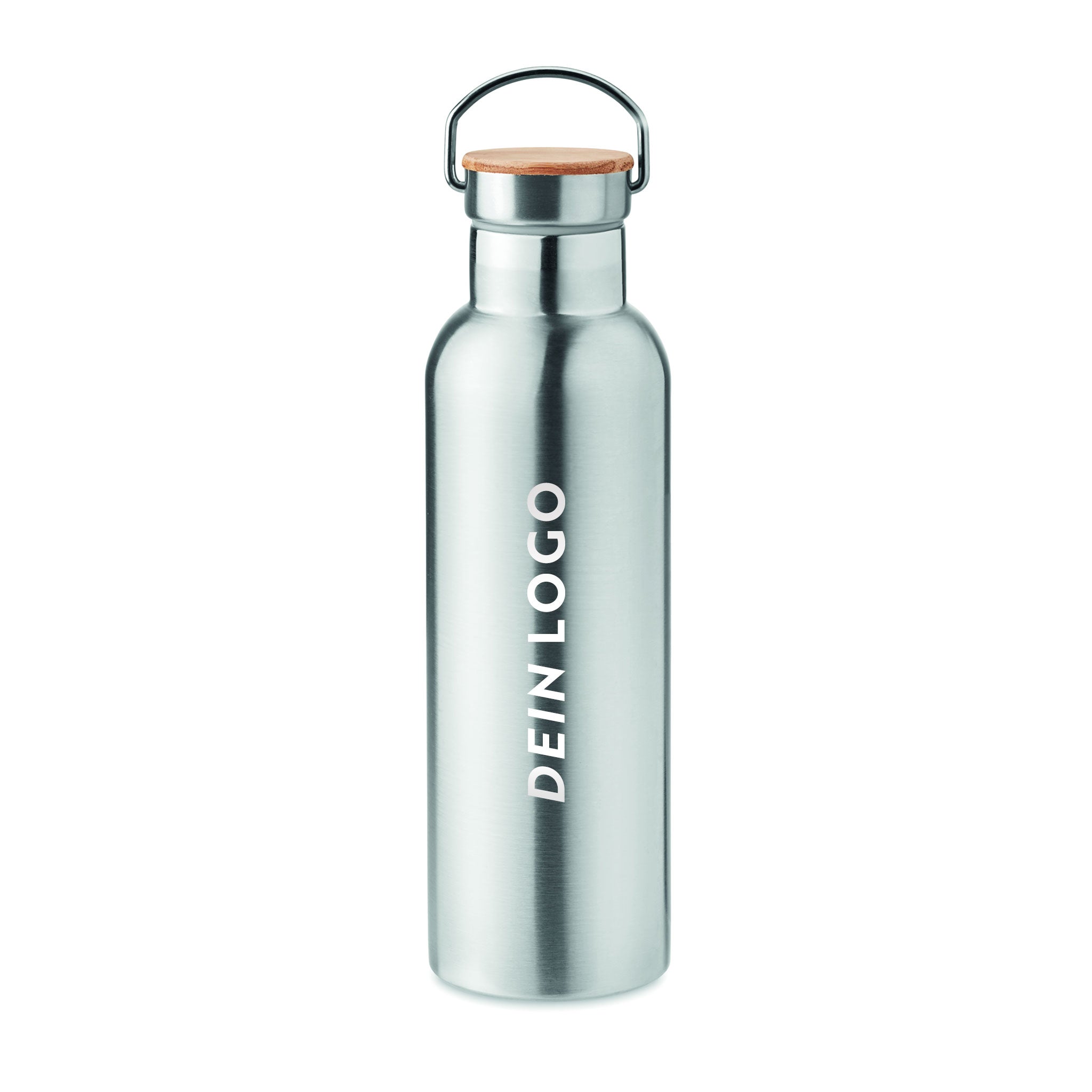 Diese robuste und funktionelle Thermosflasche hält deine Getränke durch die doppelte Vakuumisolierung lange warm und kalt. Die große Flasche mit viel Volumen ist fest verschliessbar und auslaufsicher. Mit einem gravierbaren Bambusdeckel inklusive komfortablen Tragehenkel. Die Trinkflasche gibt es in einem eleganten Silber. Die Verarbeitung besteht aus Edelstahl. Du kannst dein Logo, Design oder Grafik gravieren oder bedrucken lassen.