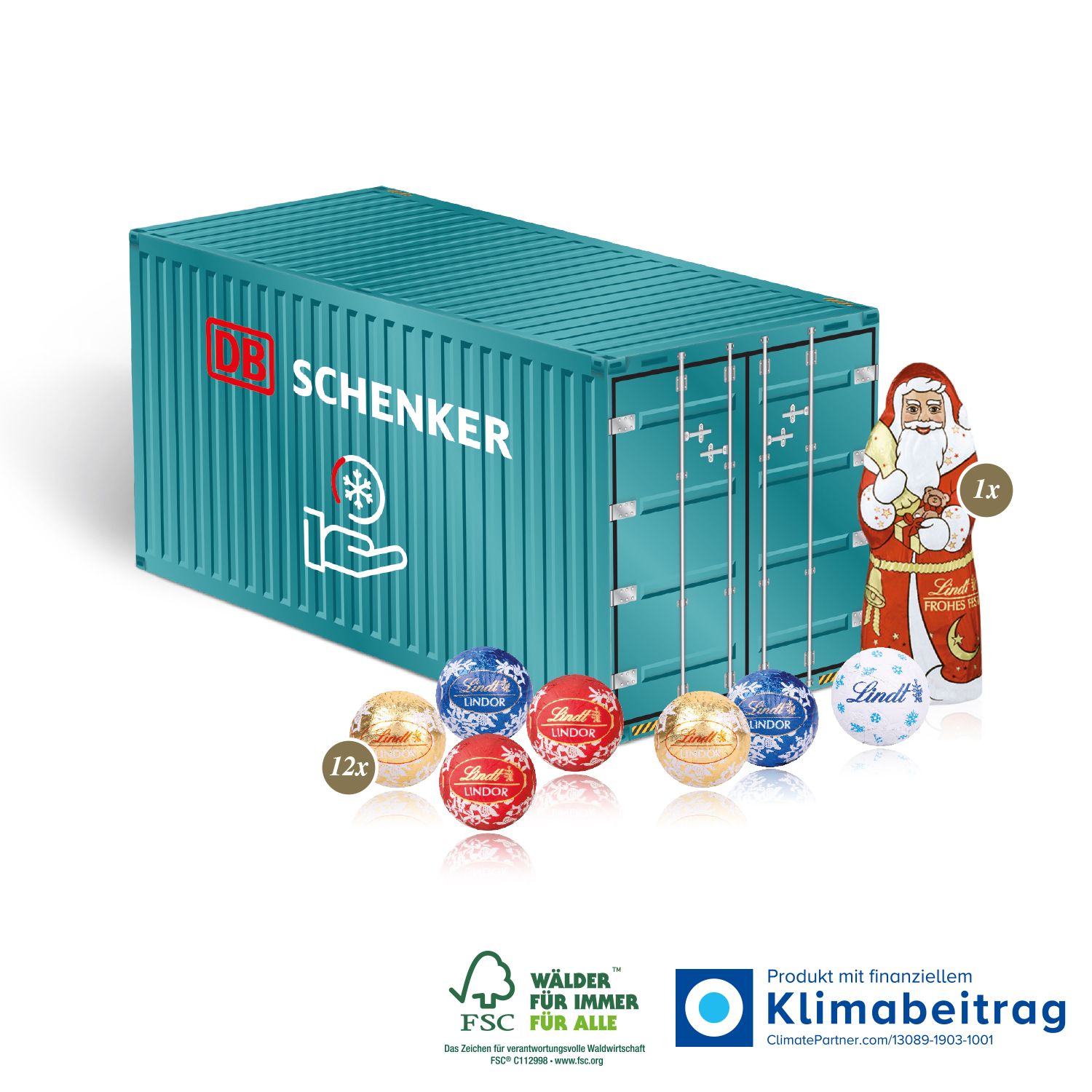 3D Präsent Container Lindt Minis und Lindt Weihnachtsmann im Überblick: