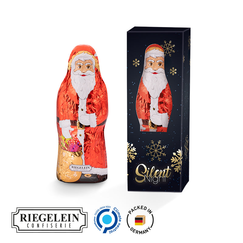 Der Riegelein Weihnachtsmann ist das perfekte Werbegeschenk zur Weihnachtszeit für deine Kund*Innen oder Mitarbeiter*Innen. In einer FSC-zertifizierten Werbebox verpackt und aus klimaneutraler Produktion. Der Weihnachtsmann ist aus Vollmilchschokolade von Riegelein. Die Werbebox wird im 4c Druck rundum bedruckt. Nur solange der Vorrat reicht!