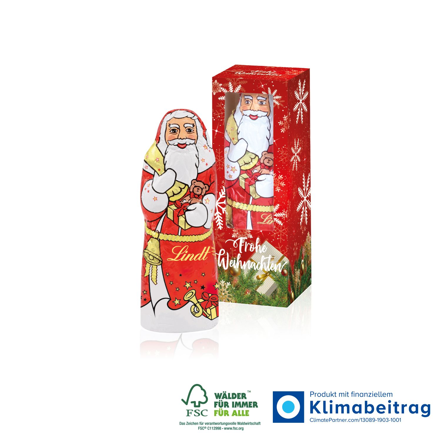 Der Lindt-Weihnachtsmann (40 g) ist mehr als nur Schokolade – er ist ein nachhaltiges, individuell gestaltbares Werbegeschenk, das sich hervorragend für die Weihnachtszeit eignet. Mit seinen hochwertigen und umweltfreundlichen Eigenschaften bietet er eine gelungene Kombination aus Genuss und Verantwortungsbewusstsein, während die individuell bedruckbare Verpackung den perfekten Platz für Unternehmensbotschaften bietet.
