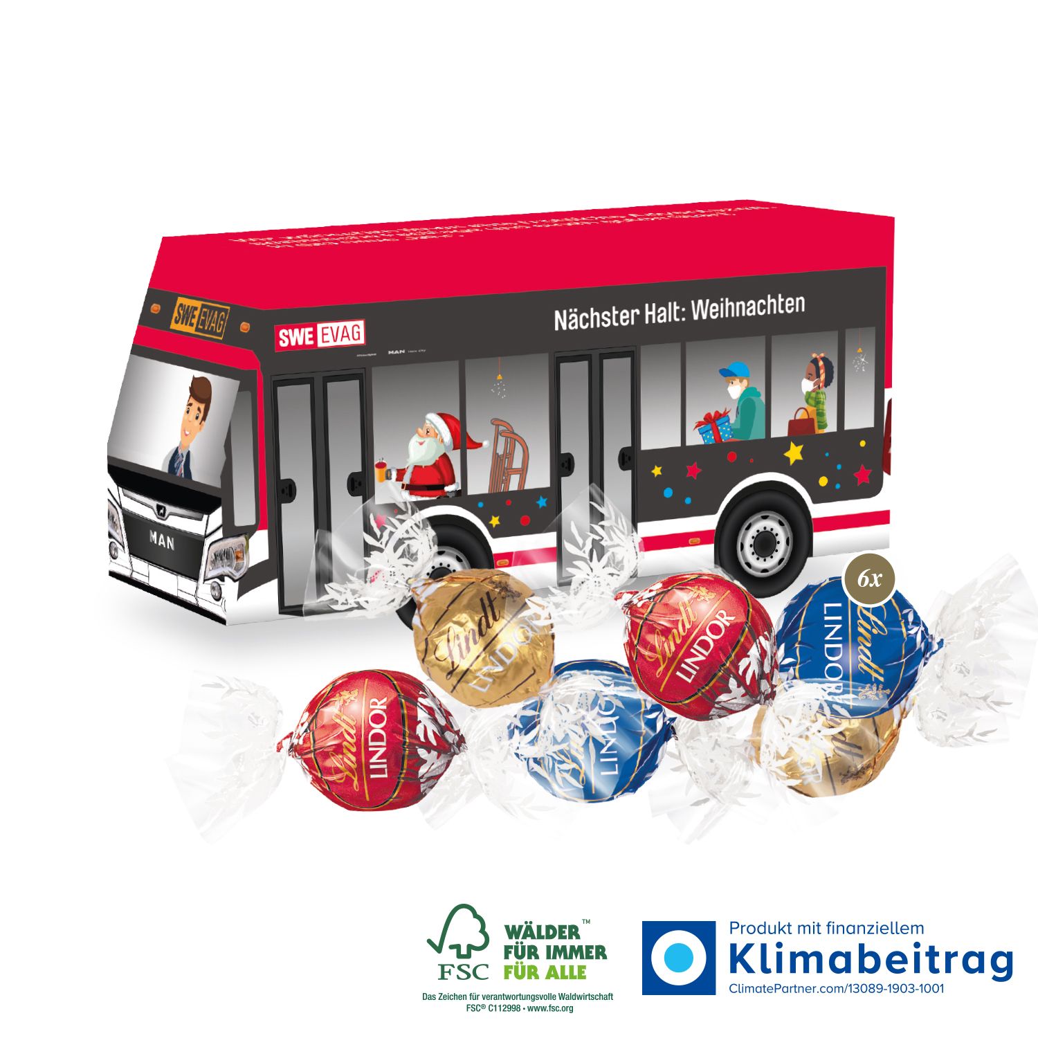 Das 3D Präsent in Form eines Busses ist ein kreatives Werbegeschenk, das nicht nur dich, sondern auch deine Kundinnen oder Mitarbeiterinnen mit einer köstlichen süßen Füllung begeistert. Es enthält 6 Stück der exquisiten Pralinés von Lindt Lindor (ca. 75 g), die in verschiedenen Geschmacksrichtungen bunt gemischt sind und für ein harmonisches Geschmackserlebnis sorgen.
