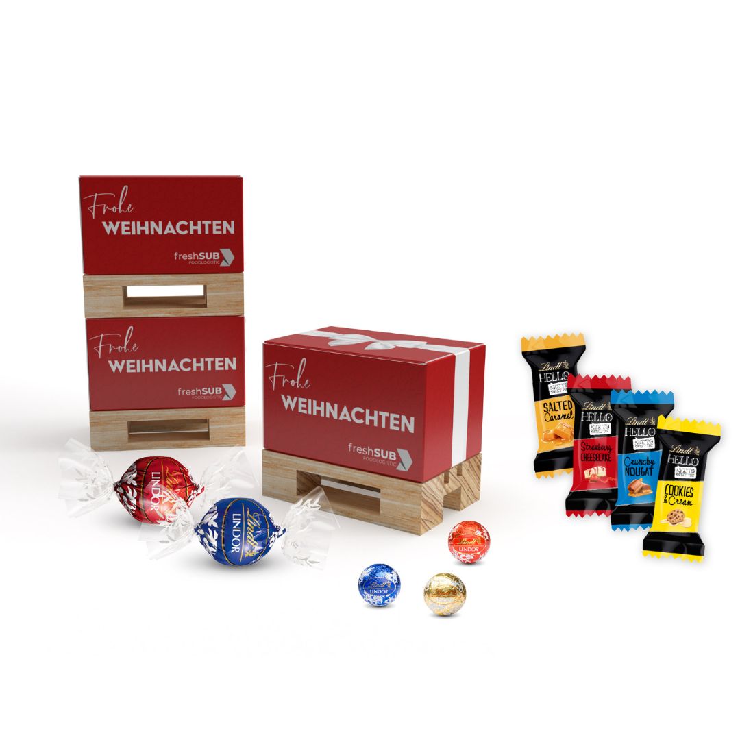 Mit einer Haltbarkeit von 9 Monaten bei sachgerechter Lagerung ist die Geschenk Mini-Palette klein ideal, um schon frühzeitig in der Vorweihnachtszeit verteilt zu werden. Sie bringt nicht nur süße Freude, sondern stellt sicher, dass dein Unternehmen auf eine nachhaltige und charmante Weise in Erinnerung bleibt.