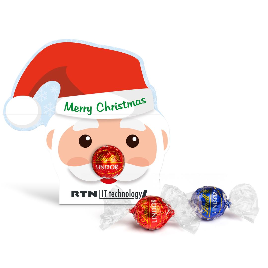 Die Lindt Lindor Kugel in Werbekartonage Santa Claus ist eine charmante und personalisierbare Geschenkidee für die Weihnachtszeit. Die kreative Werbekartonage im Santa Claus-Design wird jede Lindor Kugel als Nase des Rentiers zum festlichen Highlight und süße Freude sorgen.