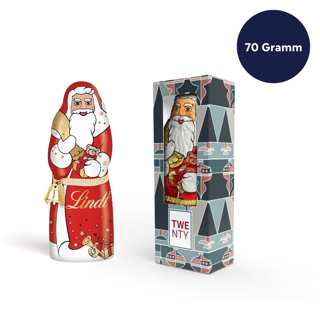 Der Lindt Nikolaus in Werbekartonage kann ganz individuell in deinem Design bedruckt werden. Die hochwertige Schokolade von Lindt im Nikolaus Design macht das Produkt zum perfekten Werbegeschenk in der Weihnachtszeit. Die Schokolade ist aus der beliebtesten Schokolade von Lindt hergestellt, der Alpenmilch Schokolade und ist in drei Größen erhältlich, damit ist für jeden etwas dabei.