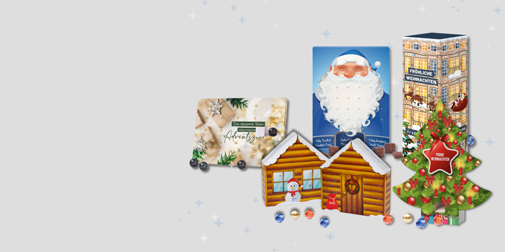 Ob ein feiner Tee-Adventskalender oder klassischer Schoko-Adventskalender: edle Varianten mit Ritter Sport, Milka, Lindt oder Sarotti – wir bieten hochwertige Werbegeschenke, die Genuss und Markenwirkung ideal verbinden. Jeder Adventskalender lässt sich individuell bedrucken und personalisieren, ob zum Aufhängen an die Wand oder als kompakter Tischkalender im Büro – wir stehen für nachhaltige Werbeartikel mit Kriterien wie "Made in Germany" oder recycelbaren Materialien.