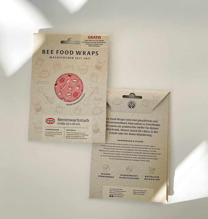 Du kannst Dein ganz eigenes Produkt gestalten, wähle aus mehreren Größen, Wachsarten und Verpackungen und lass es in Deinem Design bedrucken. Die Tücher selbst sind aus GOTS-zertifizierter Baumwolle: