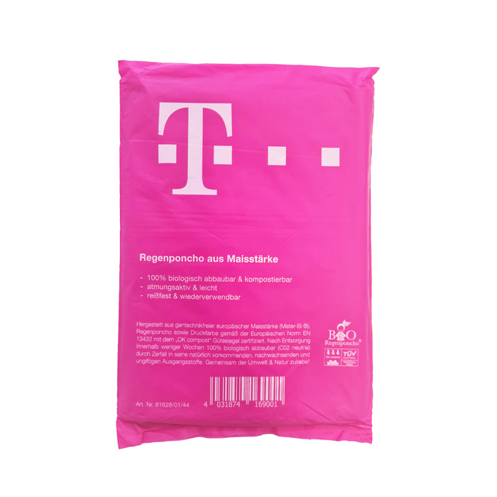 Der Regenponcho ist gemäß der europäischen Norm EN 13432 zertifiziert und trägt das „OK Compost“ Gütesiegel. Sowohl der Poncho selbst als auch die Druckfarbe zum Bedrucken entsprechen dieser Norm.