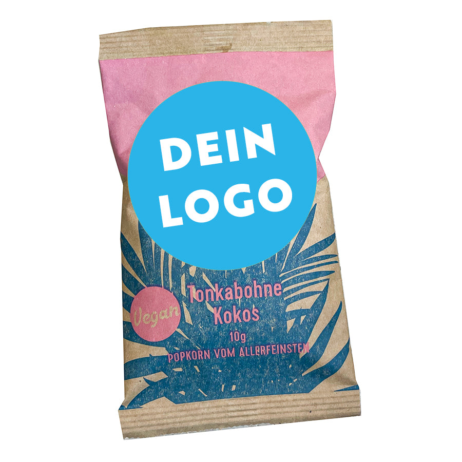 Allerfeinstes Popcorn von Knalle aus Berlin! Das Popcorn wird aus Mushroom-Mais gebacken und mit ganz besonderen Zutaten veredelt. Die Sortenvielfalt ist überragend und dazu super lecker. KNALLE ist als Unternehemen klimaneutral, sozial & fair und backt das Popcorn in ihrer Berliner Popkonditorei. Bedruckt werden kann eine Banderole in deinem Wunsch-Design oder Logo, welche um die Popkorntüte gebunden wird. Ihr könnt ebenfalls die Vorder- und Rückseite der Popkorntüte bedrucken und eurer Kreativität freien Lauf lassen. Mit einem zusätzlichen QR-Code auf der Tüte könnt ihr das Popcorn als leckeres Give Away auf der nächsten Messe verteilen und einen bleibenden Geschmack hinterlassen. Die erhältlichen Sorten: Butterkaramell, Tahiti-Vanille, Dunkle Schokolade, geröstete Mandel, Butter und Salz, Trüffel Fleur de Sel, Tonkabohne, Kokos (vegan), Erdnussbutter Salzkaramell, Nougat Piemonester Nuss (nur im Frühling), Earl-Grey Limette (nur im Sommer & vegan), Kandierte Walnuss Ahornsirup (nur im Winter), Weiße Schokolade Salzbrezel. Bunte Mischungen sind auch möglich, gerne anfragen.
