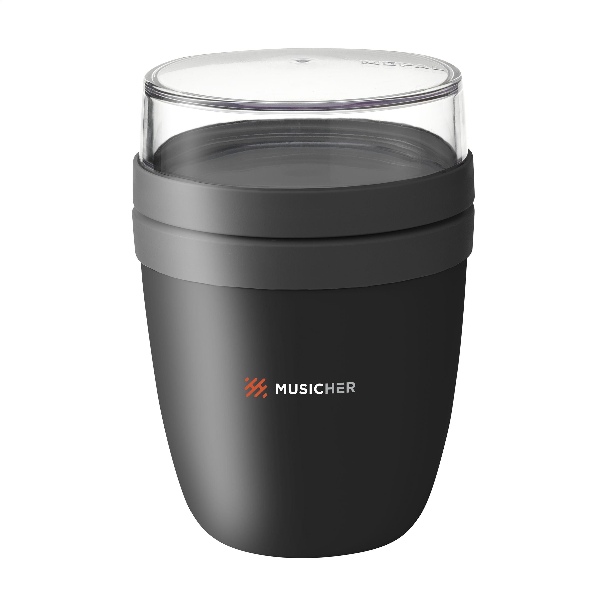 Dieser praktische Lunchpot Ellipse von Mepal ist in tollen Farben erhältlich und individuell bedruckbar in deinem Design mithilfe von verschiedenen Druckverfahren wie Tampon- oder Digitaldruck. Dabei kannst du dein Logo auf den Deckel, die Seite oder auch einen individuellen Namen aufdrucken lassen. Je nach Druckverfahren sind dir in der Farbauswahl keine Grenzen gesetzt. Der Lunchpot bietet genügend Platz für ein tolles Frühstück to go. In den oberen transparenten Behälter passen ca. 75 g Müsli und in den unteren Behälter bis zu 500 ml Joghurt hinein. Perfekt zum Vermischen und transportieren ins Büro. Du kannst zwischen den Farben Nordic black, Nordic black/Nordic black, Nordic blue, Nordic denim, Nordic green, Nordic pink und Weiß wählen. Auf Anfrage können wir dir auch passendes Besteck zum Lunchpot vorschlagen.