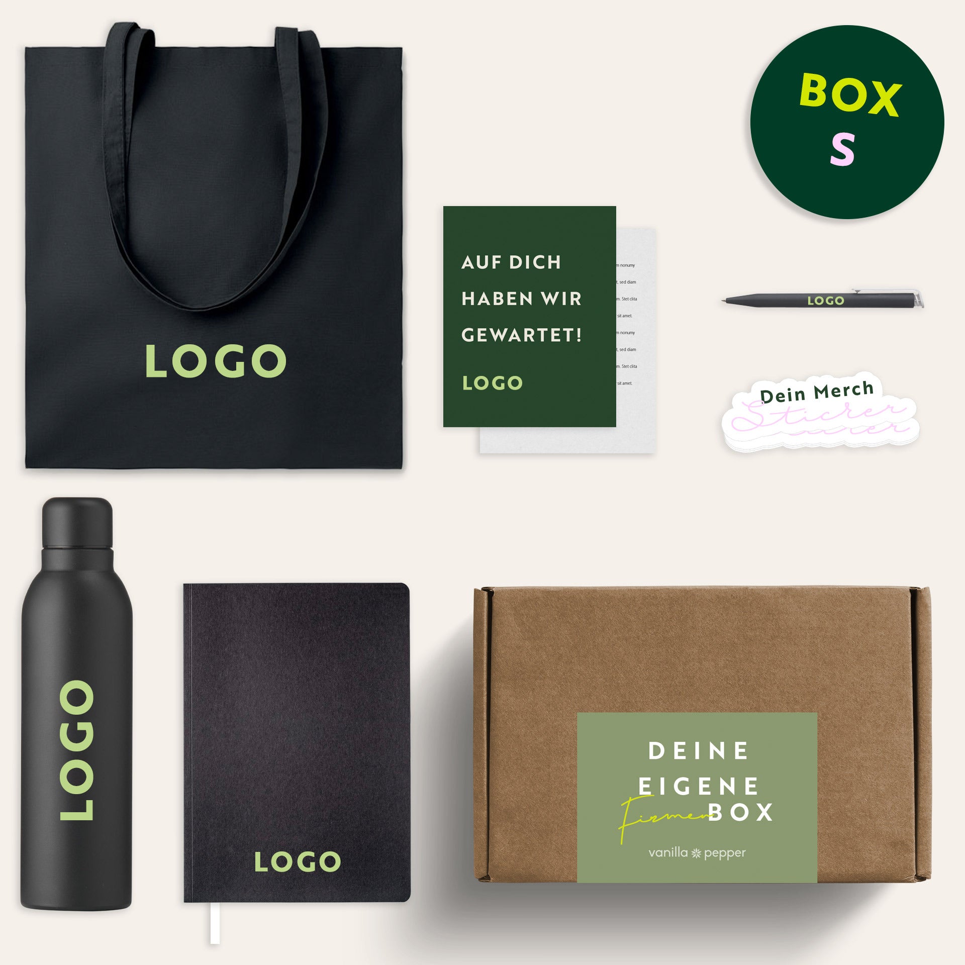 Neue Mitarbeiter*Innen eine Freude verschenken mit der Onboarding Geschenkbox. Damit die Mitarbeiter*Innen sich mit dem Unternehmen identifizieren können und schnell Teil des Unternehmens sind. Jede Geschenkbox enthält je eine individualisierte Postkarte, einen Sticker und einen Bio-Kugelschreiber aus PLA-Granulat auf Zuckerrohrbasis. Beachte, dass bei einer Bestellmenge von 50 Geschenkboxen je 2 Kugelschreiber enthalten sind. Viele Werbeartikel in den Geschenkboxen haben Varianten zur Auswahl, nennt uns gerne eure gewünschte Variante zu den einzelnen Produkten bei der Bestellung. In jeder Preiskategorie ist eine Geschenkbox erhältlich und erhält mit aufsteigender Größe weitere Produkte zusätzlich enthält.