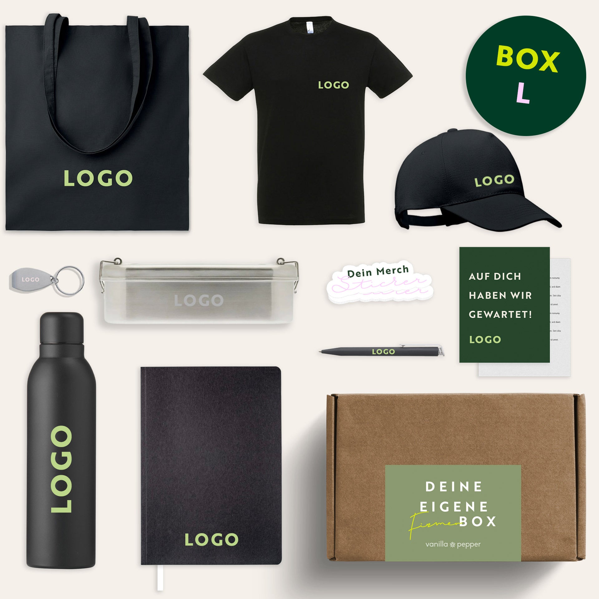 Die Box wird inklusive Konfektionierung und Füllmaterial geliefert und ist bereit für den Versand. Es können sowohl Einzel- als auch Bulk-Versandoptionen gewählt werden, wobei die Versandkosten separat berechnet werden. Auf Wunsch besteht die Möglichkeit, einzelne Produkte in der Box auszutauschen, um sie an die individuellen Bedürfnisse deines Unternehmens anzupassen.