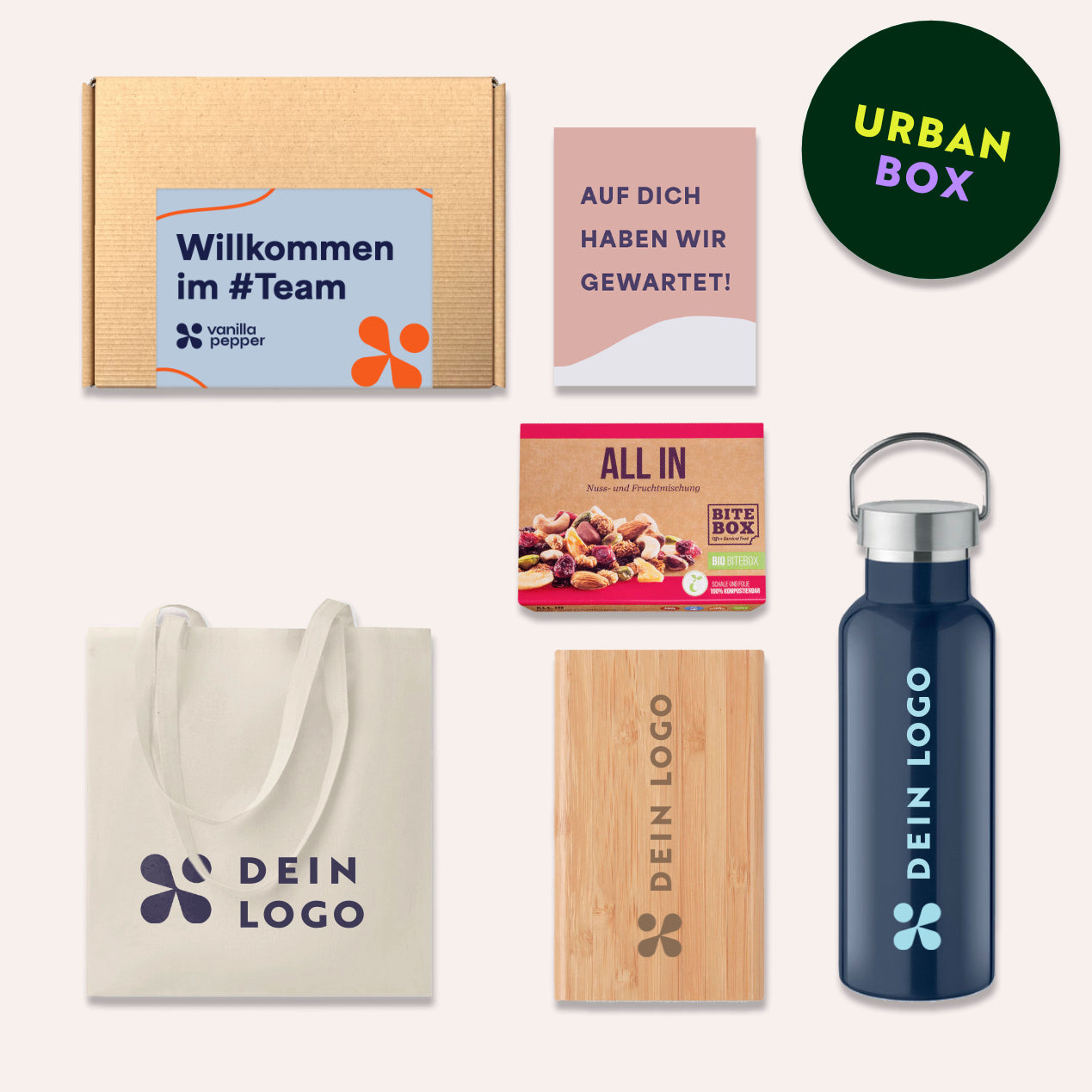 Entdecke die Urban Box, das ideale kreative Mitarbeitergeschenk für dein Unternehmen, das nachhaltigen Luxus und funktionale Eleganz vereint. Diese nachhaltige Geschenkbox ist perfekt für Firmenveranstaltungen, Teamevents und als Dankeschön-Geschenk für deine MitarbeiterInnen oder GeschäftspartnerInnen. Jede Box enthält eine personalisierte Postkarte, die individuell mit deinem Logo gestaltet werden kann, um eine persönliche Note zu setzen.